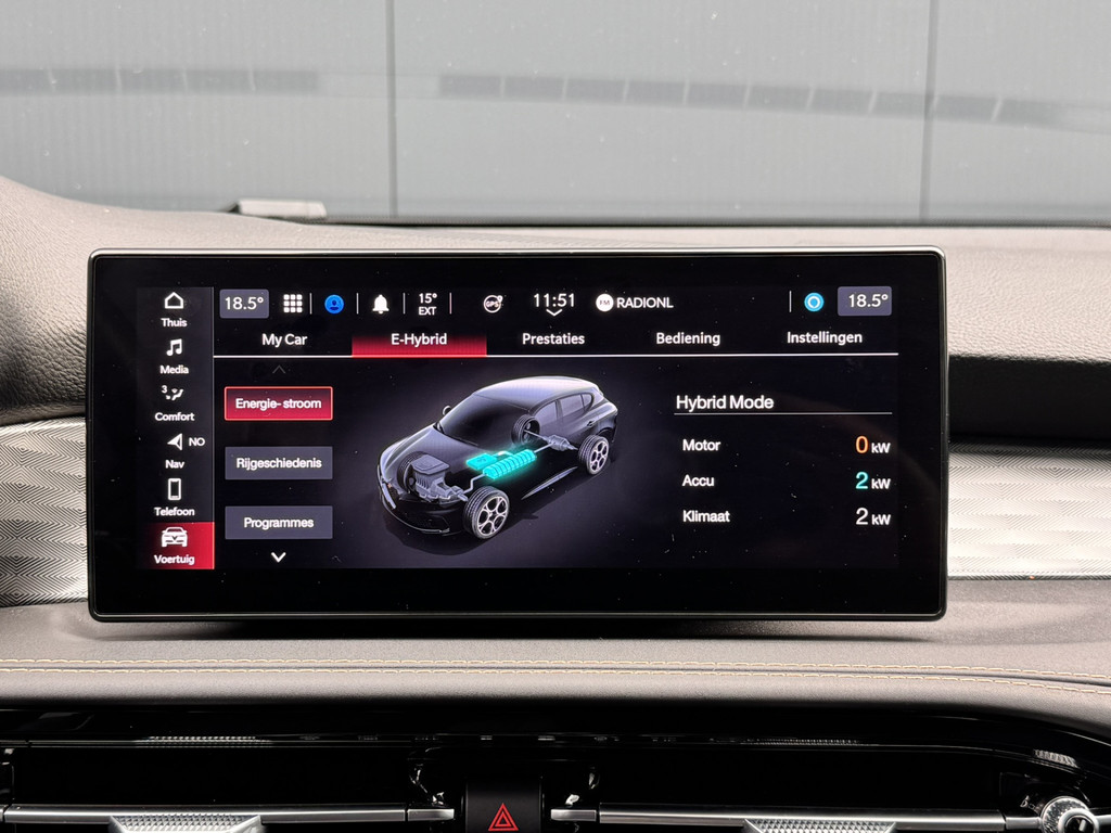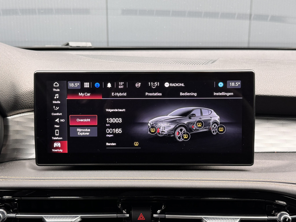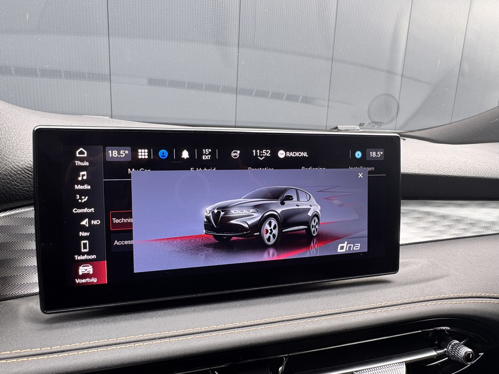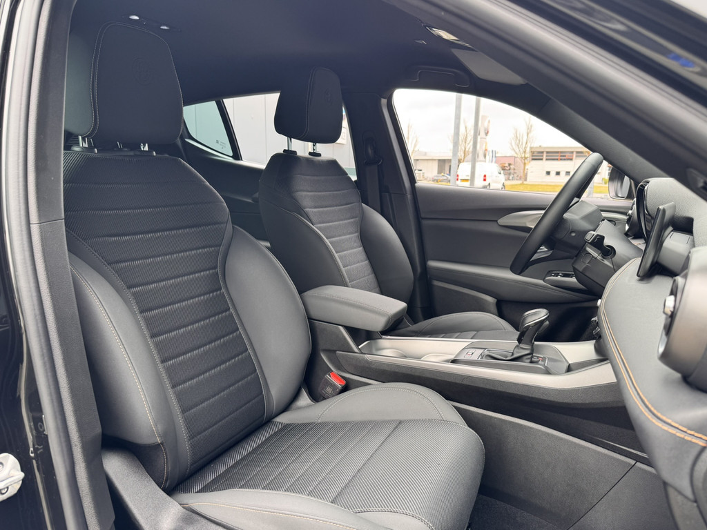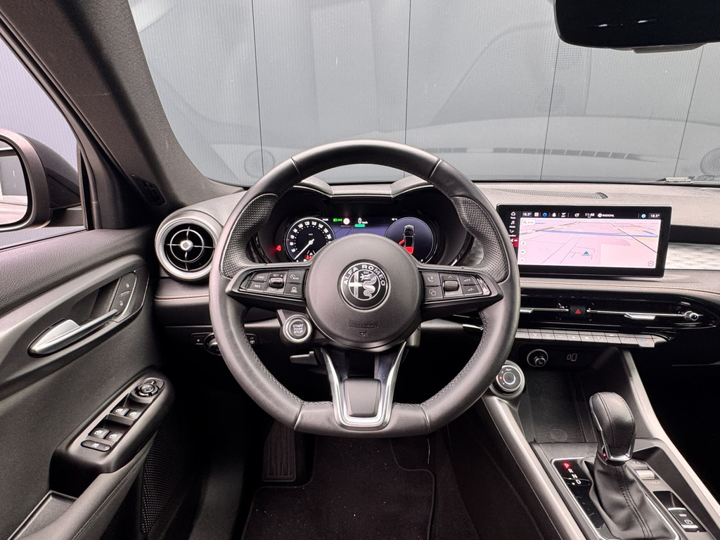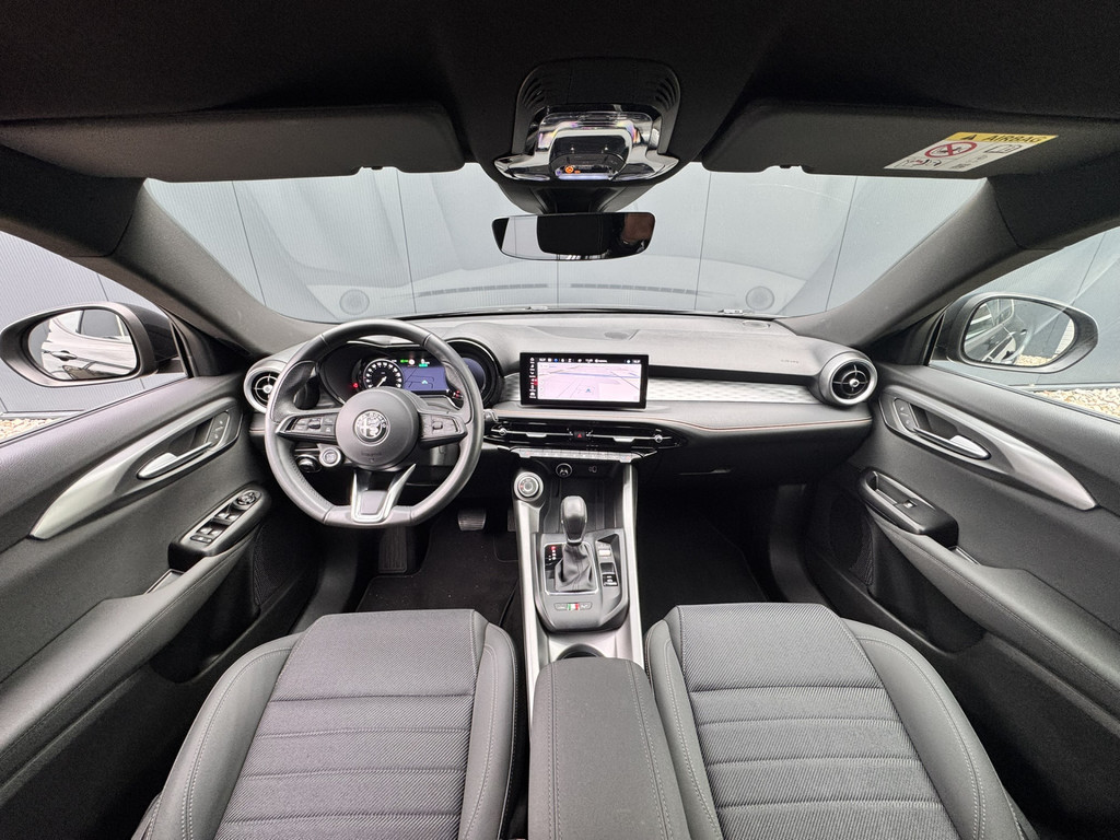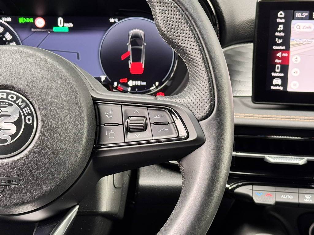 Uw rit wordt comfortabel en veilig gemaakt door het digitale dashboard dat alles projecteert wat u wenst in de digitale wereld van mobiliteit. Twijfelen hoeveel ruimte u achter de auto heeft? Met de achteruitrijcamera weet u altijd hoeveel centimeter! Adaptive cruise control is veilig en comfortabel. De snelheidsregelaar houdt automatisch afstand tot het voertuig dat voor u rijdt. Veilig en comfortabel rijden wordt nog eens versterkt door Connected Services, zodat u diverse vitale functies van de auto altijd kunt checken in de app. U bedient het full map navigatiesysteem en het audio-installatiesysteem met DAB-radio via knoppen op het stuur, of zelfs met uw stem. Zo kunt u steeds uw aandacht gericht houden op de weg. De uitrusting van deze Alfa Romeo is met automatische airconditioning, draadloos opladen, lederen sportstuur, keyless entry en automatisch dimmende binnenspiegel behoorlijk compleet.