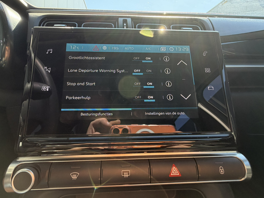 Zoals u mag verwachten van deze Citroën C3 is hij uitgerust met een reeks aan actieve veiligheidssystemen. In het instrumentarium laat de verkeersborddetectie de actuele verkeersborden zien. Ongemerkt buiten de rijstrook raken? Nee hoor, het Lane-keeping systeem waarschuwt en corrigeert. Ook als uw aandacht even verslapt, blijft de forward collision warning bij de wekker. Dreigt er een botsing met een voor- of tegenligger, dan waarschuwt het systeem direct. In deze Citroën vinden we verder een hill hold functie, brake assist, vermoeidheidsherkenning en bandenspanningcontrolesysteem.