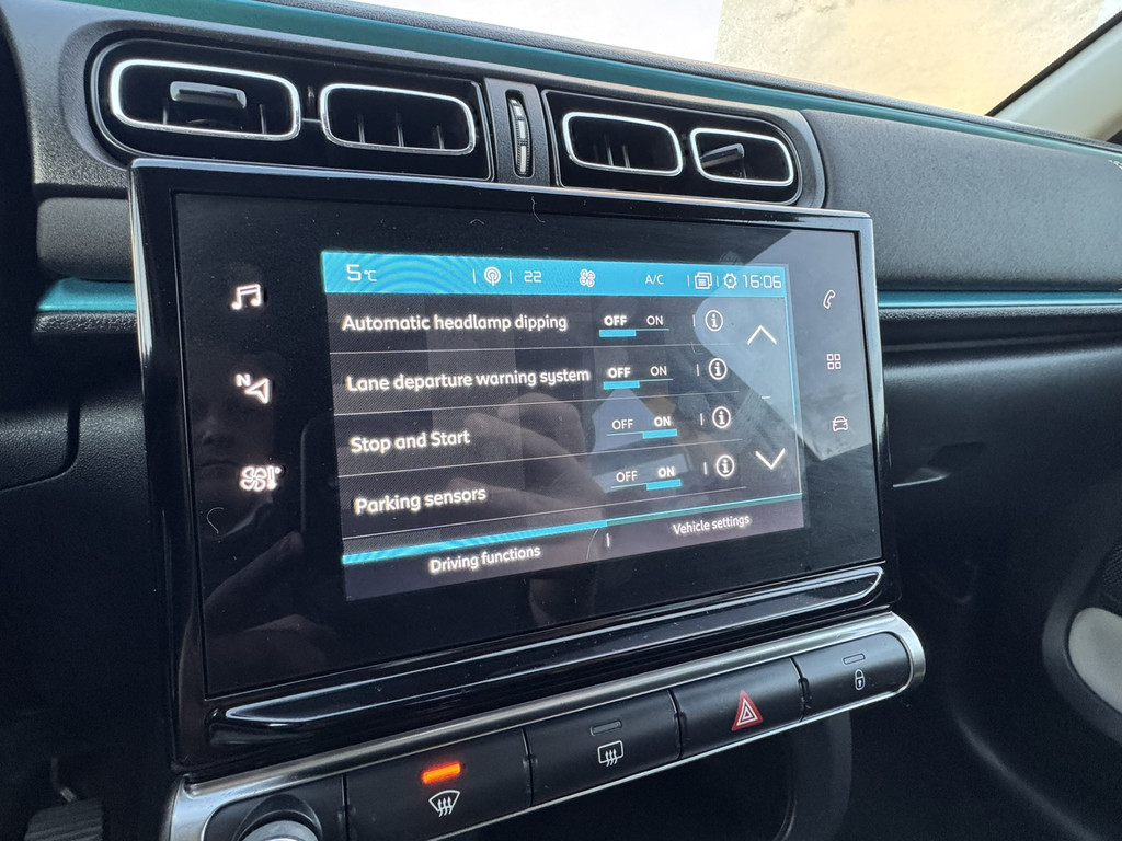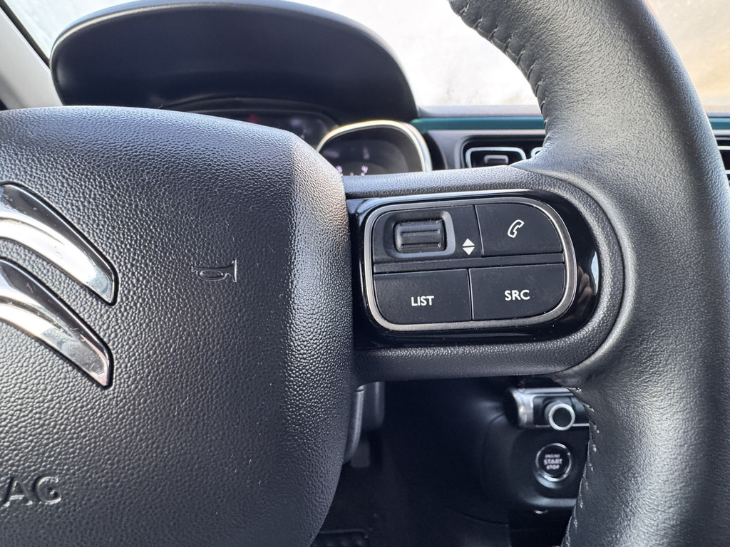 De nieuwste veiligheidssystemen komen in deze Citroën C3 samen. Verkeersborddetectie herkent tijdelijke en permanente verkeersborden langs en boven de weg. Het Lane-keeping systeem let constant op en waarschuwt of corrigeert als u onoplettend over de lijnen van de rijstrook gaat. Op een kop-staartbotsing zit niemand te wachten. Daarom is de forward collision warning onderweg constant alert en berekent via een sensor de veilige afstand tot voorliggers. Bovenop deze veiligheidsfeatures heeft deze Citroën bovendien hill hold functie, brake assist, vermoeidheidsherkenning en bandenspanningcontrolesysteem.