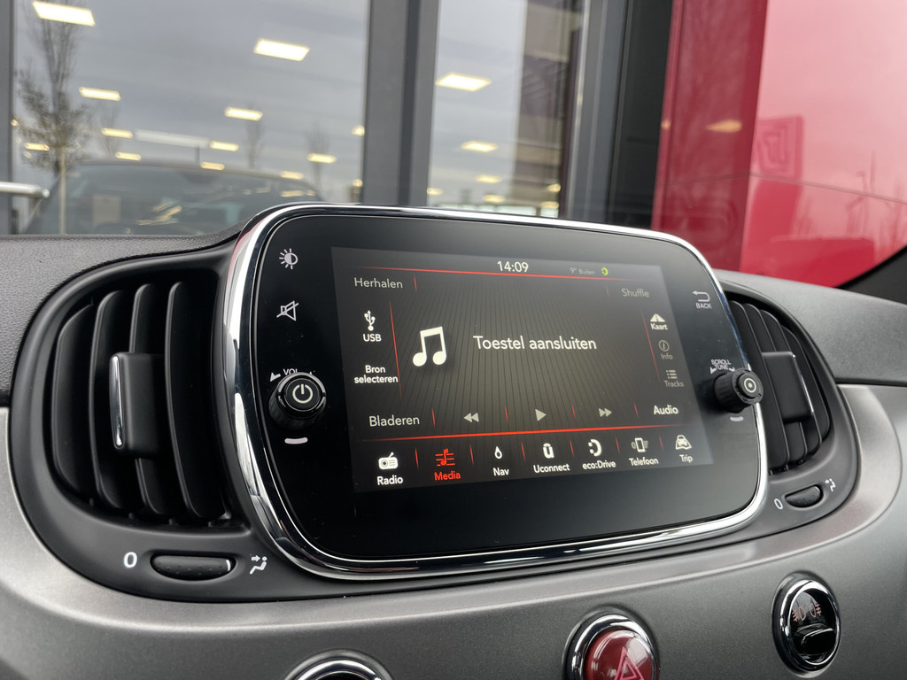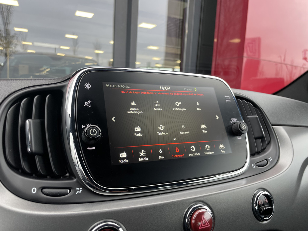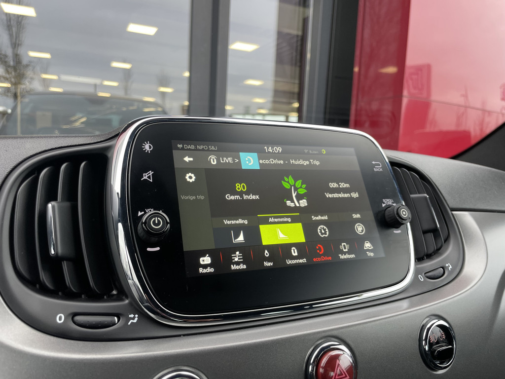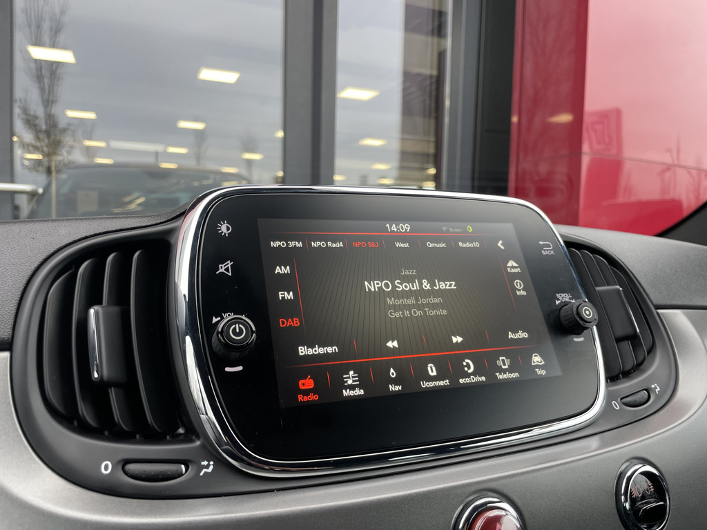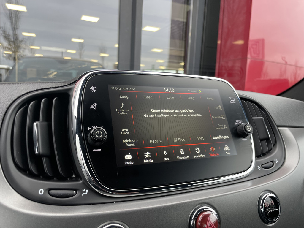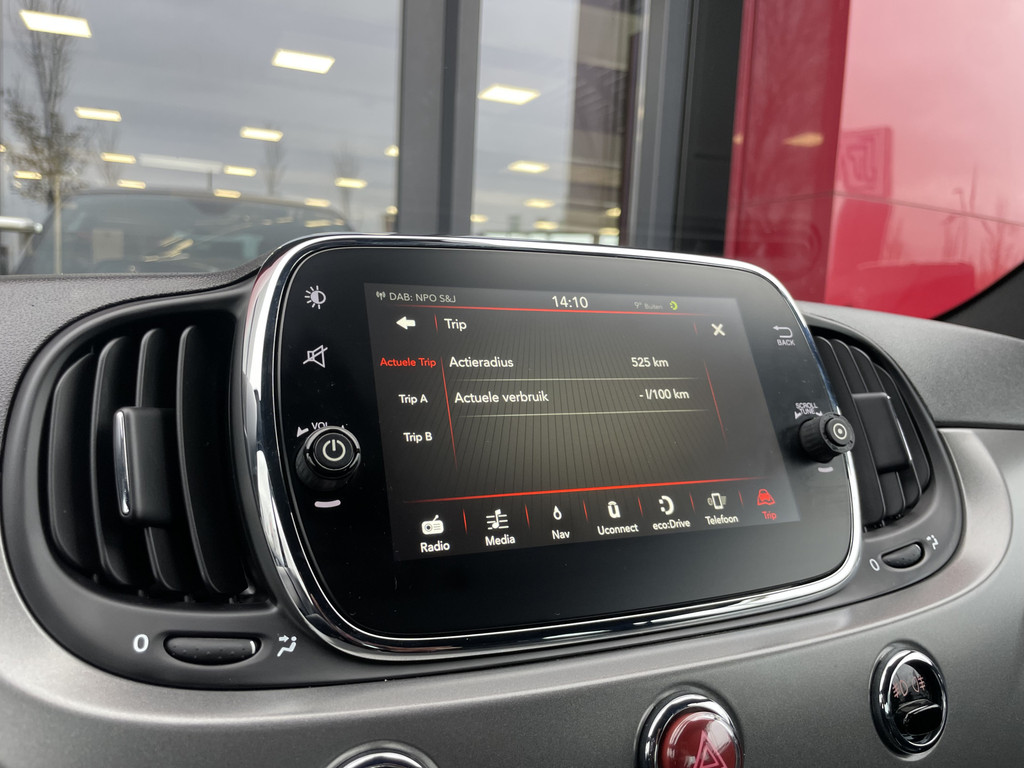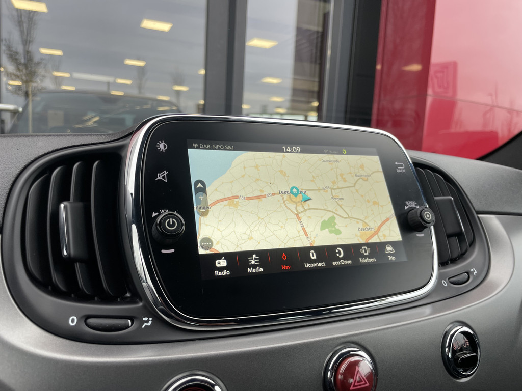 Je weet altijd waar je moet zijn, dankzij het navigatiesysteem. Deze Fiat 500 is voorzien van sensoren aan de achterzijde om een achteropkomend verkeer waarschuwing te geven als de afstand tussen u en een achterligger te klein is. In een auto als deze kunt u niet zonder automatische airconditioning, zodat de temperatuur altijd goed is. Met de audiobediening op het stuur regelt u de geluidsinstallatie gemakkelijk en veilig. Voor een storingvrije radio-ontvangst zorgt de ingebouwde DAB-ontvanger. Deze auto is voorzien van lederen sportstuur, parkeersensoren achter, cruise control, automatisch dimmende binnenspiegel, centrale deurvergrendeling met afstandsbediening en lederen versnellingspook.