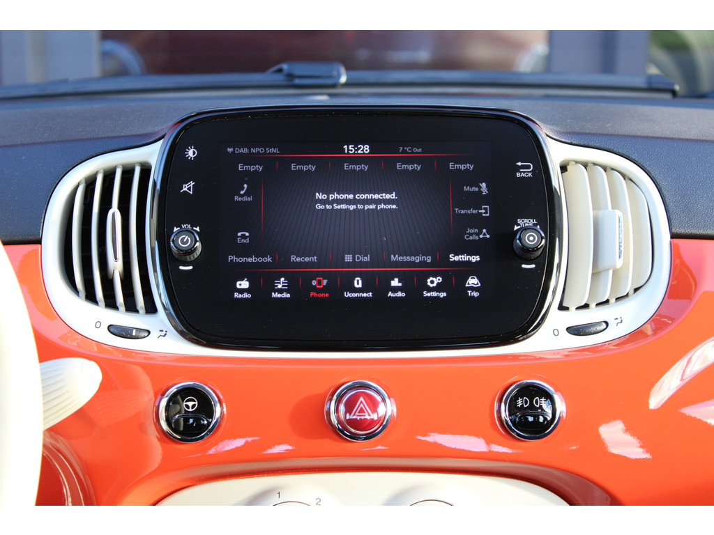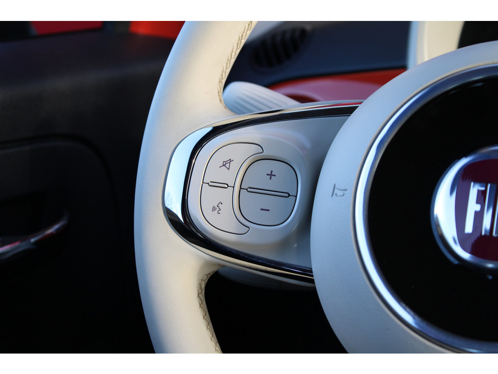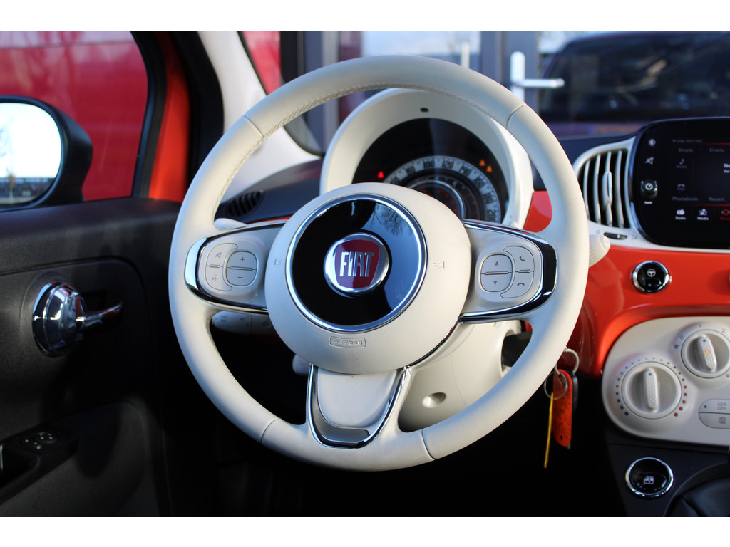 U hoeft het stuur geen moment los te laten om de audio aan te passen. De audiobediening op het stuur is een veilige en praktische oplossing. Geniet van een ruime selectie digitale radiostations met de DAB-ontvanger. Boem is ho? Niet bij deze Fiat 500. De piepjes van de parkeersensoren waarschuwen u op tijd voor obstakels. Ja, airconditioning is er natuurlijk ook in deze auto. De Fiat is standaard voorzien van: centrale portiervergrendeling, boordcomputer en verstelbaar stuur.