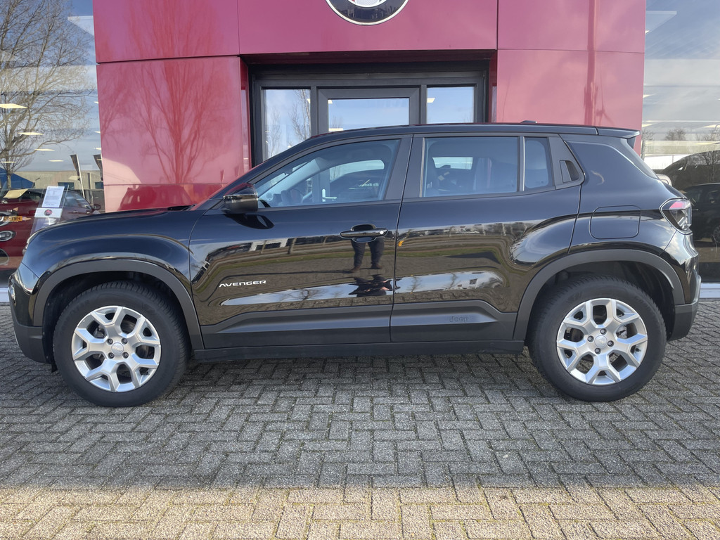 Techniek en design helemaal van nu. Kilometerstand van gisteren. Deze bijna-nieuwe Jeep Avenger heeft z'n nestveren afgeschud en is klaar om te vliegen. Met zijn benzinemotor en handgeschakelde zesversnellingsbak is dit een prima auto voor nog vele kilometers. Tijdens de koude maanden is stoelverwarming een voorziening die u niet wilt missen. De elektrische achterklep opent met een druk op de knop, zodat u gemakkelijk toegang heeft tot de bagageruimte. De uitmonstering van deze auto wordt gecompleteerd door onder meer 17 inch lichtmetalen velgen, LED koplampen en in delen neerklapbare achterbank.