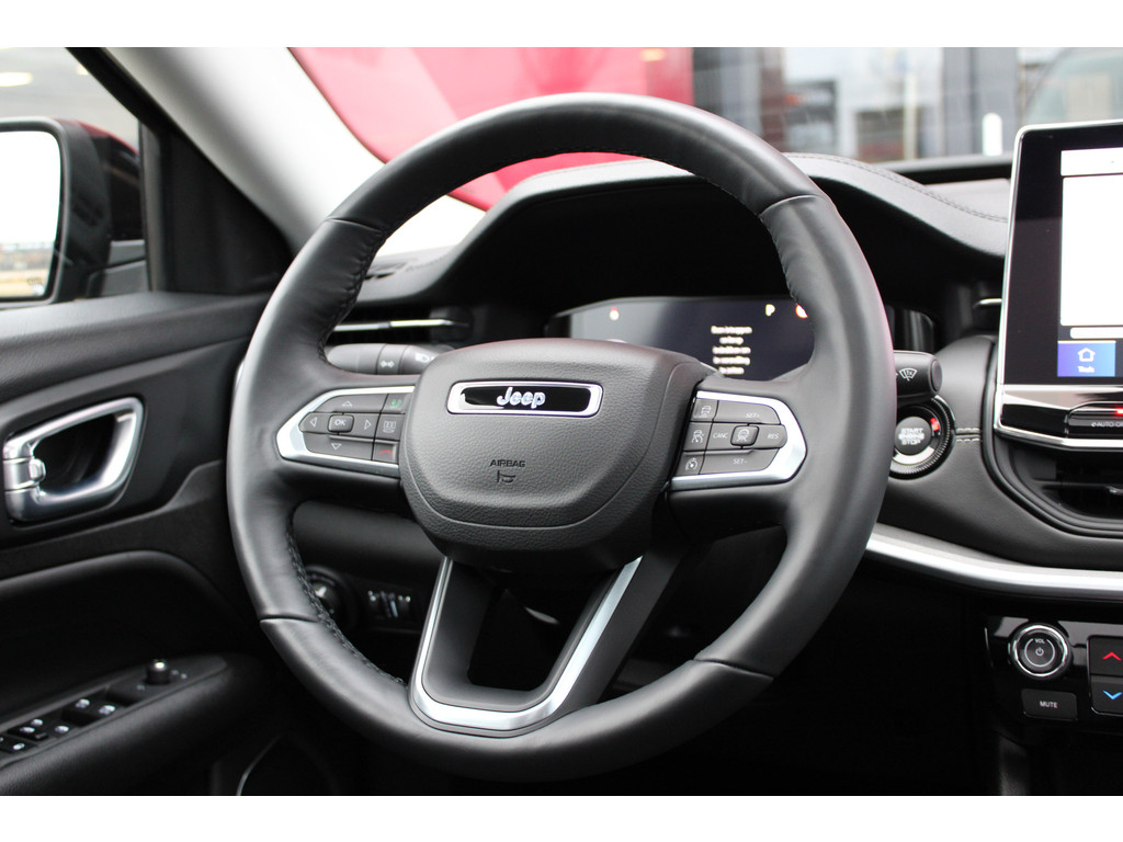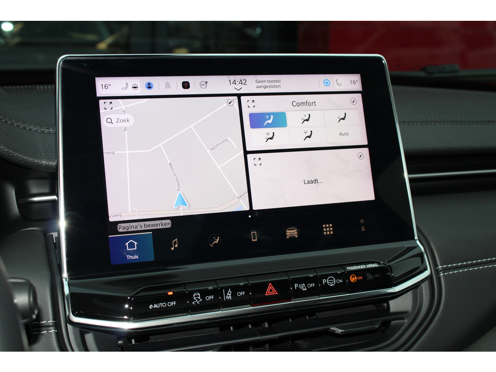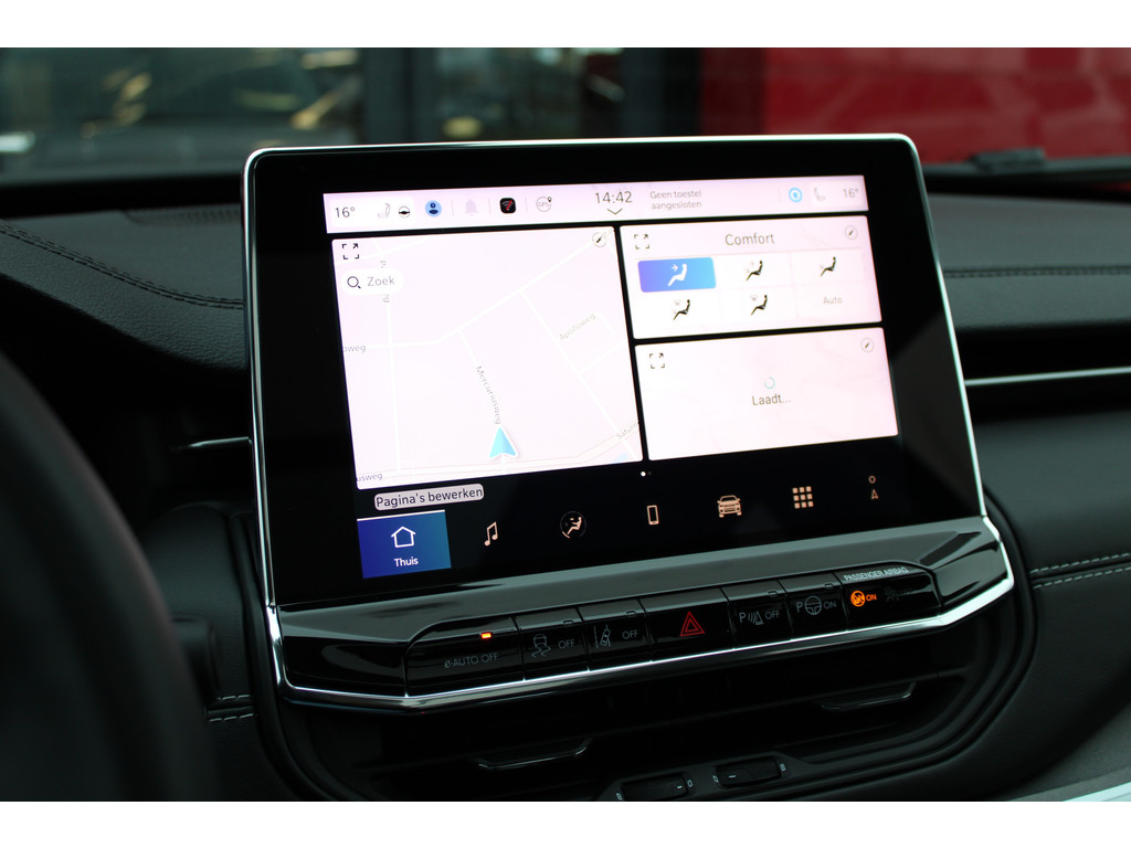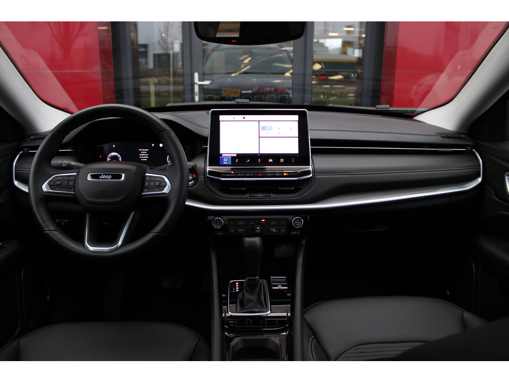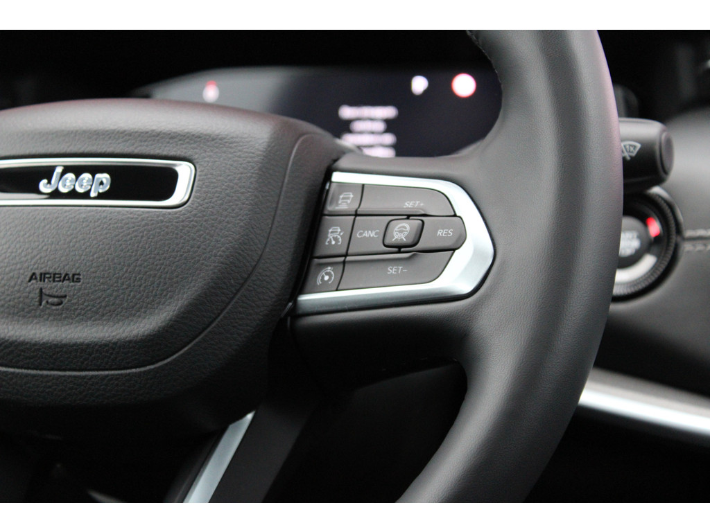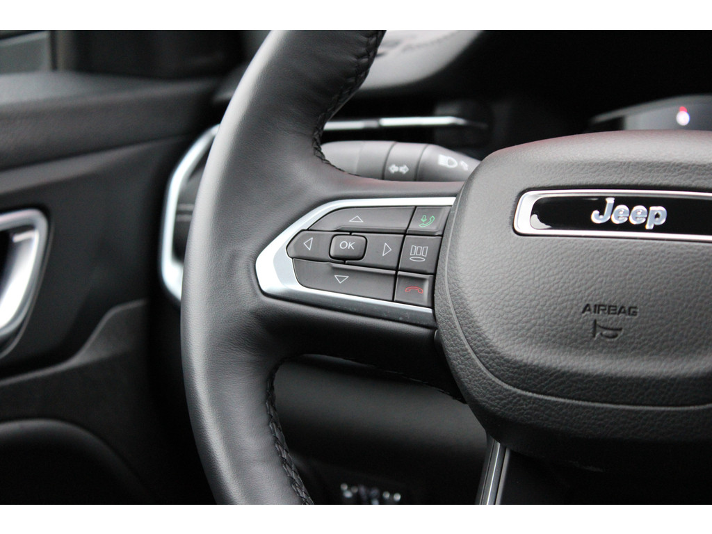 Alle functies die u onderweg nodig heeft, worden permanent geregistreerd en zijn afleesbaar op het digitale dashboard. De vier camera's genereren samen een 360 graden beeld rond de auto, zodat u een volledig overzicht hebt van wat er rondom uw auto gebeurt. Adaptive cruise control houdt de ingestelde snelheid vast en houdt afstand tot het voertuig voor u. Uw smartphone is tegenwoordig de sleutel tot heel veel. Ook voor deze auto. Remote services, noemen we dat. Waar u ook bent, contact houden is een eitje. Met spraakbediening of de knoppen op het stuur regelt u het audiosysteem, terwijl u uw blik op de weg gericht houdt. De audio-installatie biedt daarbij glasheldere ontvangst dankzij DAB-ontvangst. De uitrusting van deze Jeep is met automatische airconditioning, draadloos opladen, regensensor, keyless entry, automatisch dimmende binnenspiegel en lederen stuur behoorlijk compleet.