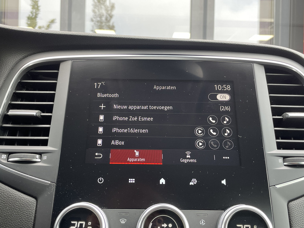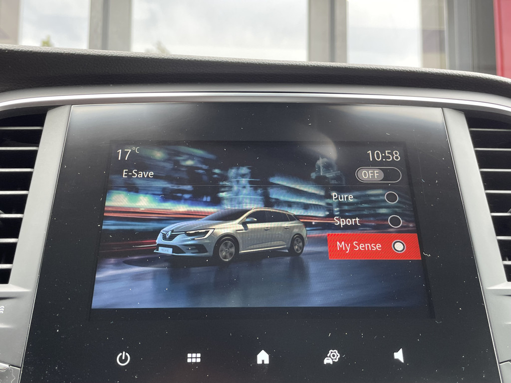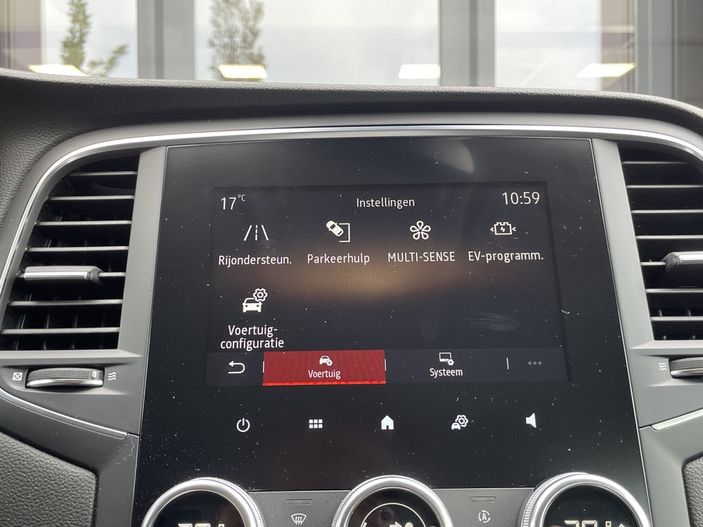 Voor een goed en duidelijk overzicht onderweg is het digitale dashboard uitermate slim ingedeeld. U bedient het full map navigatiesysteem en het audiosysteem met DAB-radio via knoppen op het stuur. Zo kunt u steeds uw aandacht gericht houden op de weg. De auto is ook uitgevoerd met automatische airconditioning. Parkeerplekken worden er niet ruimer op. Maar met de aanwezige parkeersensoren krijgt u deze Renault Mégane Estate zonder problemen op z'n plaats. De cruise control geeft elke flitser het nakijken. De Renault is standaard voorzien van: keyless entry, centrale deurvergrendeling met afstandsbediening, boordcomputer en verstelbaar stuur.